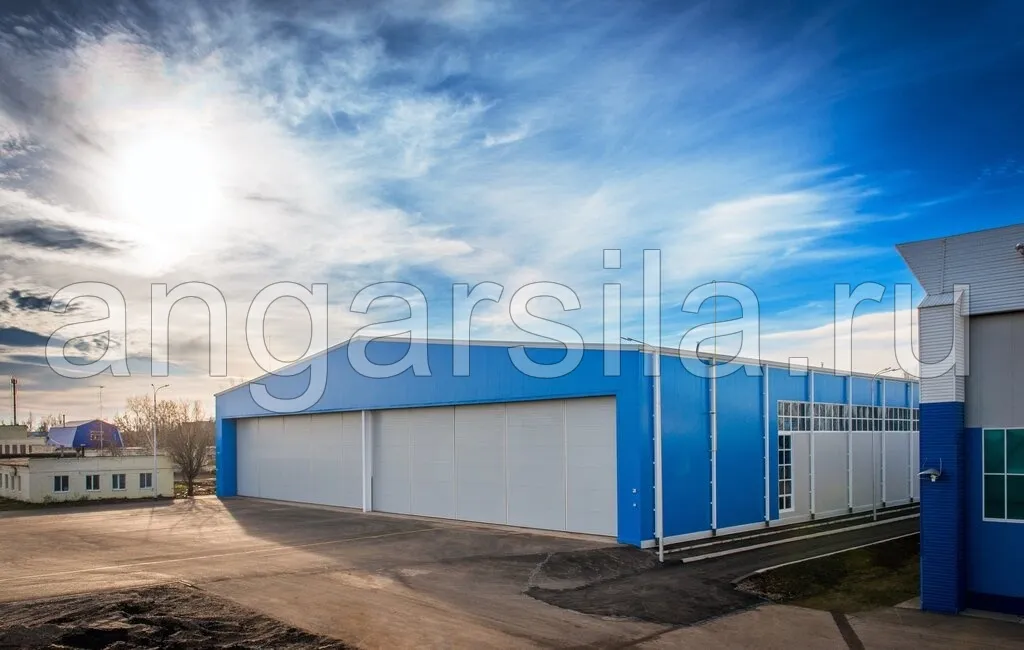Основные параметры ангара: длина — 55 метров, ширина — 25 метров, высота — 6.5 метров. Конструкция включает в себя несущий металлический каркас и наружное покрытие из современных трехслойных сэндвич-панелей.